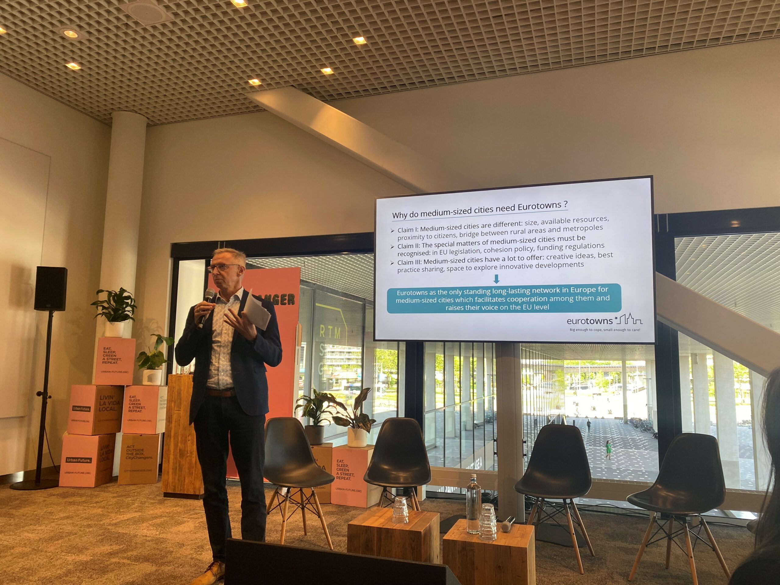 Eurotowns took part in the Urban Future Conference, which was held in Rotterdam from 4 to 6 June. Under the title „Big enough to cope, small enough to care – How medium-sized cities are leading sustainability“, the network made an active contribution to the diverse conference programme with an official Eurotowns workshop.