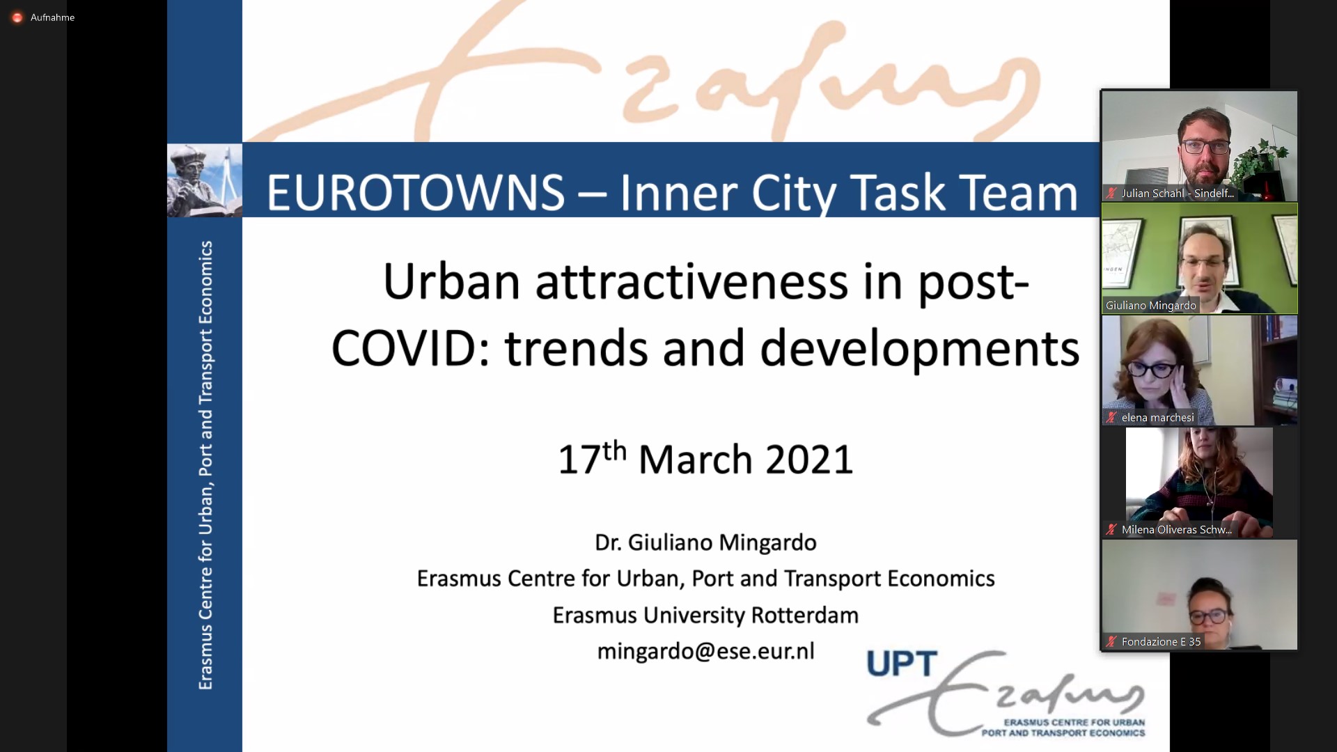Topic of the today’s Eurotowns Task Team Inner City Meeting was urban attractiveness in post Covid-19: trends and developments from a medium-sized cities perspective with a very interesting key note speech by Dr. Giuliano Mingardo from the Erasmus Centre of Urban, Port and Transport Economics of the Erasmus University of Rotterdam. A special thanks goes to our colleagues from Reggio Emilia for the perfect organisation and to all participants for the fruitful discussions. Stay tuned about the next steps.