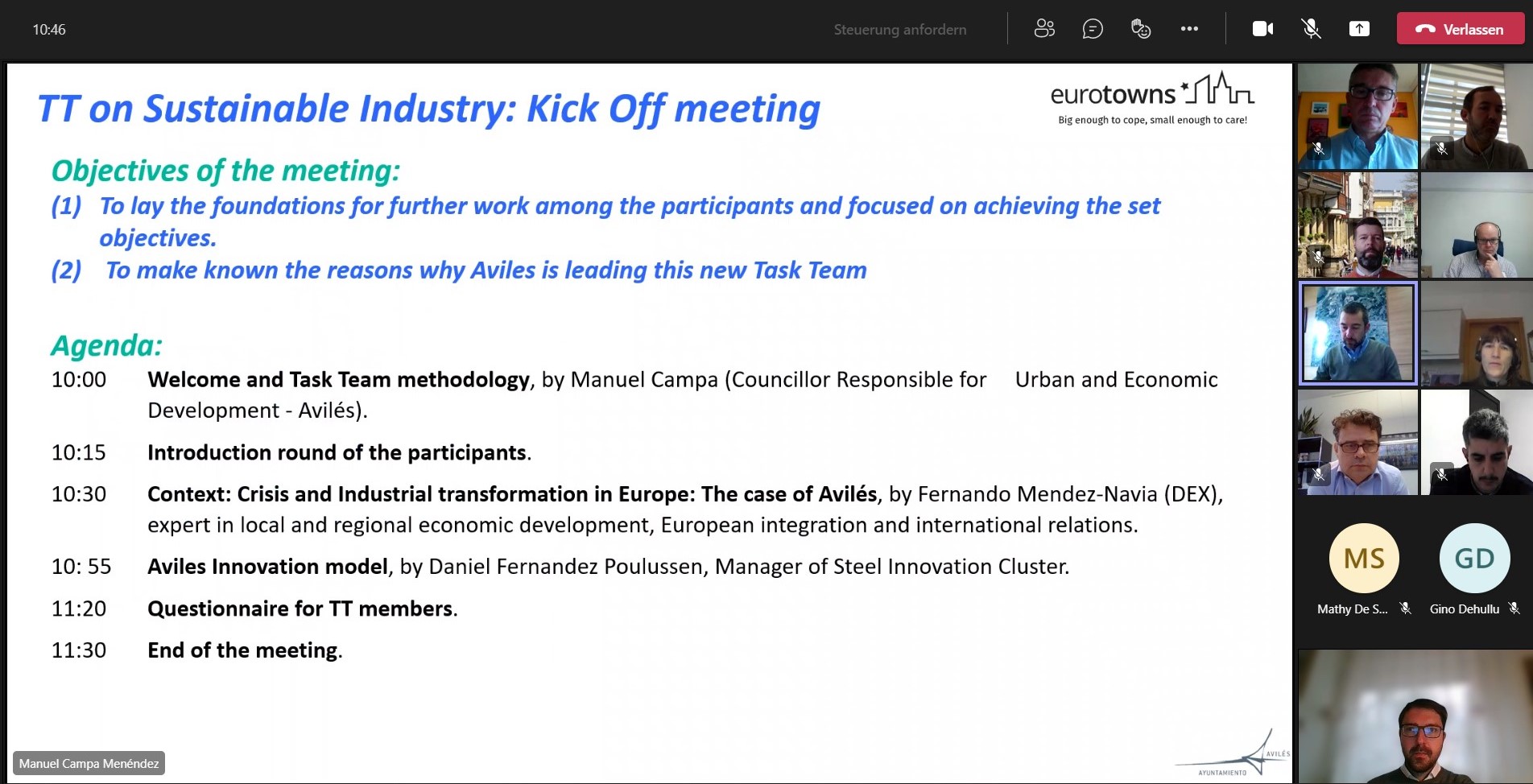 2021 – The Task Team on Sustainable Industry was launched with a virtual kick-off meeting on 30 November 2021. The event focused on establishing the context of European industry and its interrelation with medium-sized cities through the case of Avilés. Questionnaire for TT members was sent out in order to find out their priorities and objectives for their cities in relation to the identified topics.